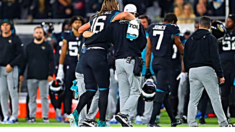 Veteran backup C.J. Beathard took over at quarterback in Lawrence's absence, which included leading the Jaguars to a game-tying field goal drive to force overtime. Lawrence led the Jaguars to an 8-3 record entering Monday's (December 4) loss and has thrown for 3,004 yards, 14 touchdowns and seven interceptions on 271 of 399 passing, while also recording 248 yards and four touchdowns on 56 rushing attempts in 2023.