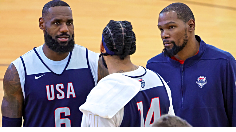 Danny Perkins: “I know this sounds sacrilegious and I know this sounds ridiculous, but this is the most talented Team USA roster that we’ve ever had. It is top to bottom more talented than the Dream Team. The Dream Team was more impactful, the Dream Team will win by a higher margin of victory – it wasn’t fair. It was the first time NBA players were allowed to play. Charles Barkley had the famous line ‘I don’t know anything about Angola, but they’re in trouble’... The rest of the world has caught up to USA basketball. In terms of 12 people on a team together – I agree with Steve Kerr – it's got 12 Hall of Famers. That 2020 team; Jerami Grant was on the team, JaVale McGee was on the team. Trivia question: does anyone know who Keldon Johnson was? He’s got a gold medal from 2020. No disrespect to Keldon Johnson but he’s not exactly Devin Booker or Tyrese Haliburton, who might be the 12th man on this team. In 2016, Harrison Barnes and DeAndre Jordan... Nice players and served a role, but not all-time guys, and not Hall of Famers. The 2008 ‘Redeem Team’, probably the most famous Team USA since the Dream Team. That team: Michael Redd, Tayshaun Prince... I just don’t see how this 2024 team loses, and they’ve got every motivation to lock in and be dominant."