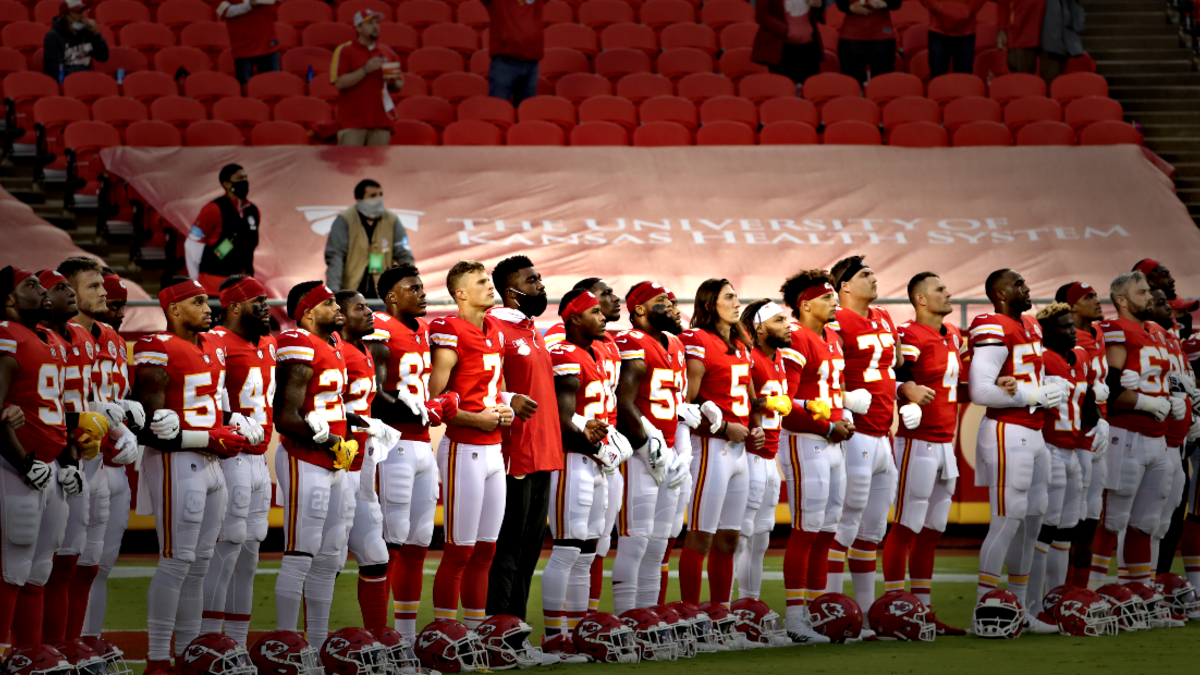As the NFL kicked off the 2020 season, the Houston Texans and Kansas City Chiefs linked arms in the middle of the field for a moment of silence to promote unity. While the players joined together following the national anthem, a smattering of boos could be heard by fans in attendance. The Chiefs allowed about 17,000 fans into the Arrowhead Stadium.