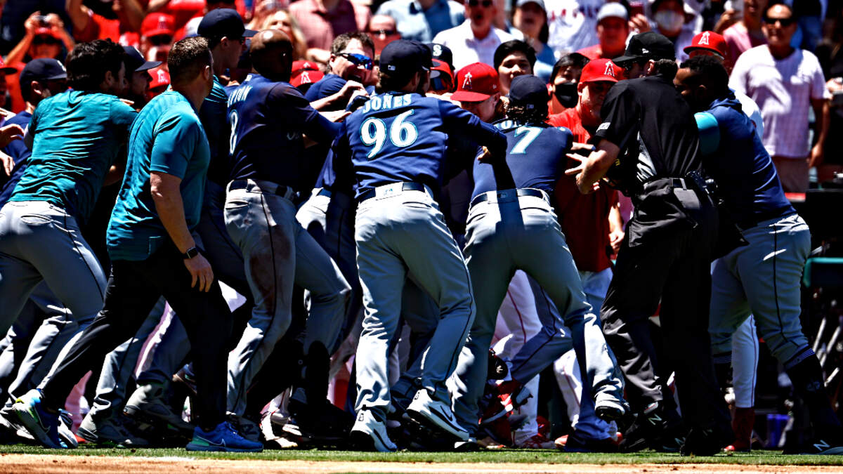 According to the team's head trainer, Bradley suffered the injury when he tripped and fell coming out of the dugout in the early moments of the Angels' brawl with the Mariners. In the video shown above, you can see just that.