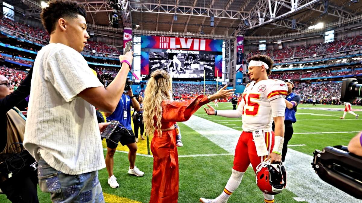 A video shared online shows Kansas City Chiefs quarterback Patrick Mahomes' brother, Jackson, dancing in the background during his post-Super Bowl LVII interview with NFL Network Sunday (February 13) night.
