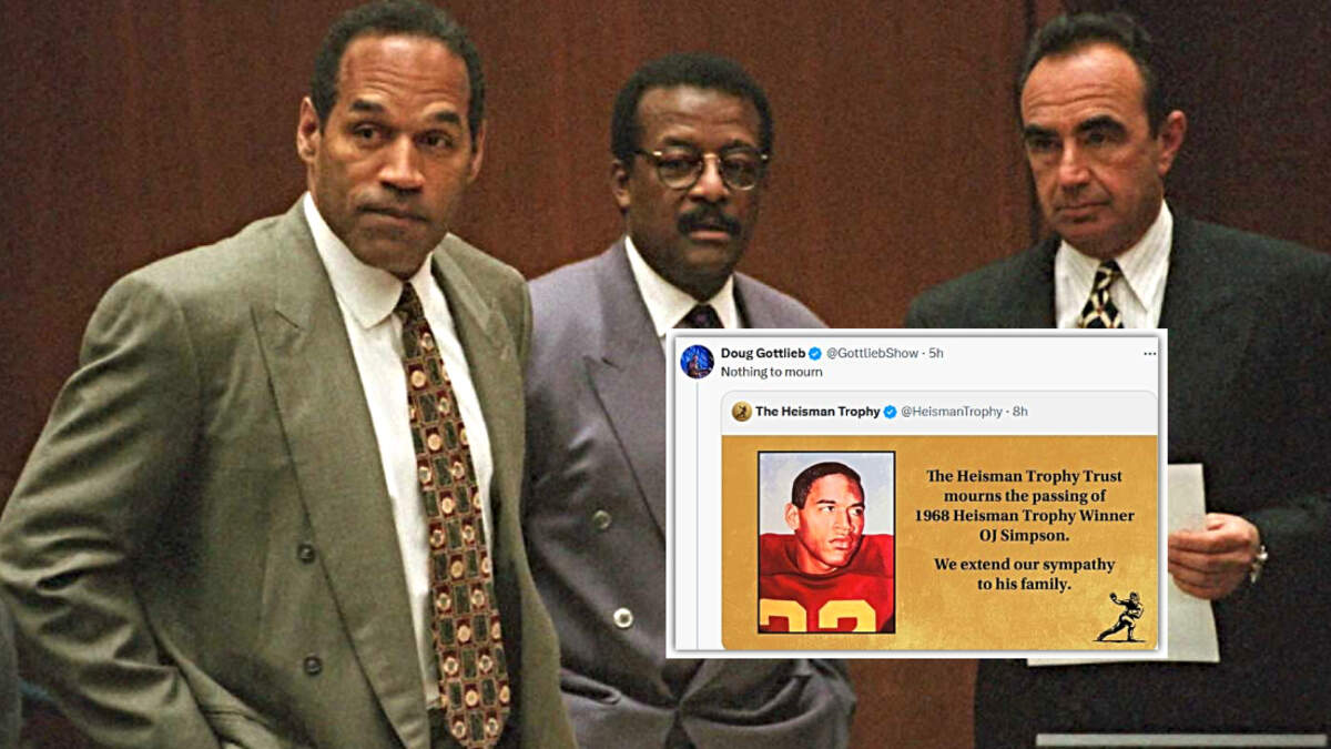 And you got some people, and I’ll pull out my X account where ‘the Heisman Trophy Trust mourns the passing of the 1968 Heisman winner OJ Simpson. We extend sympathy to his family.’ That’s fine, but I said ‘nothing to mourn.’ Some dude named Cerrone Battle, who does NBC Sports in Boston and 985 the Sports Hub, he actually has 4.8 thousand followers, this was actually his tweet to me: ‘Why not? What did he do that makes him not worthy of being mourned?’... Like, really?