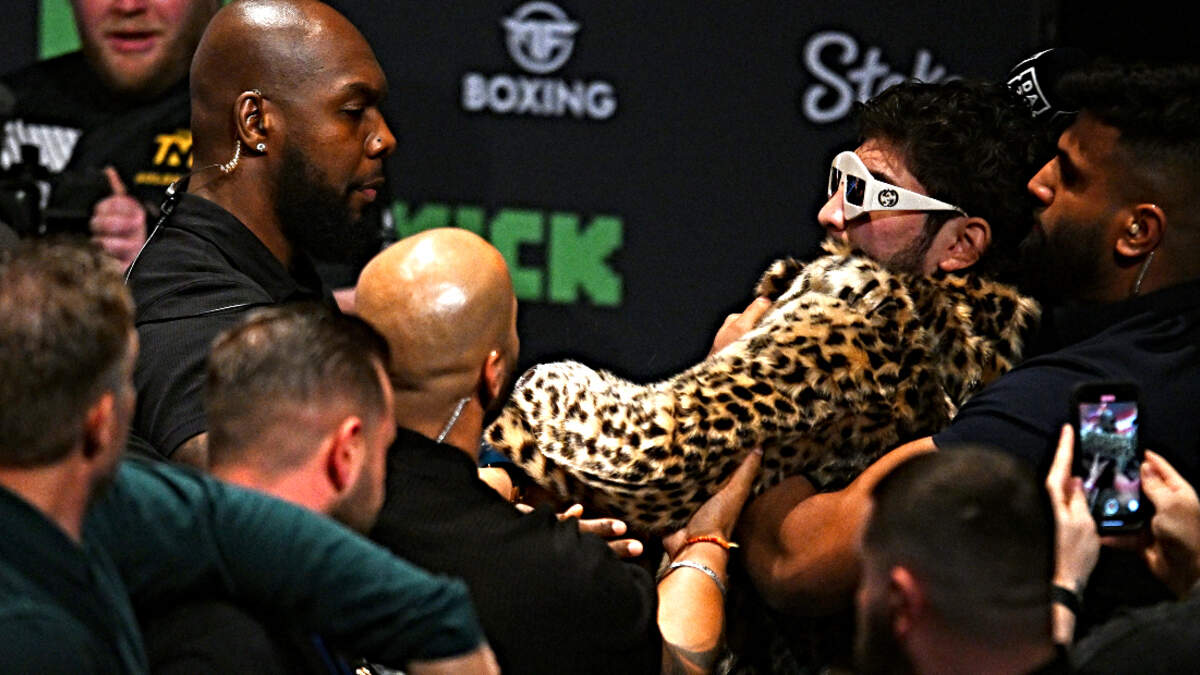 Multiple videos shared online show MMA fighter Dillon Danis throwing a microphone at social media influencer Logan Paul during a press conference in Manchester, England, promoting their upcoming pay-per-view boxing event on Saturday (October 14).